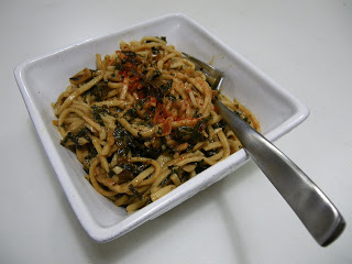 For example, today was all about Udon! Woke up late so I boiled some noodles, pounded some down and brought the rest for lunch. Unfortunately the rush caused massive blandness, so when I made more for dinner I spiced it up with some greens, garlic and olive brine. Went a little on the over-flavored, but it was a nice twist.