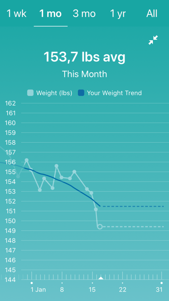 - When I measured myself on Saturday I was 5.2 lbs away from my goal. I’m working more on loving the process rather than focusing on the destination (something I’ll talk more about in a later blog post), so I figured that I would not hit it and was okay with that. And then in the last two days: