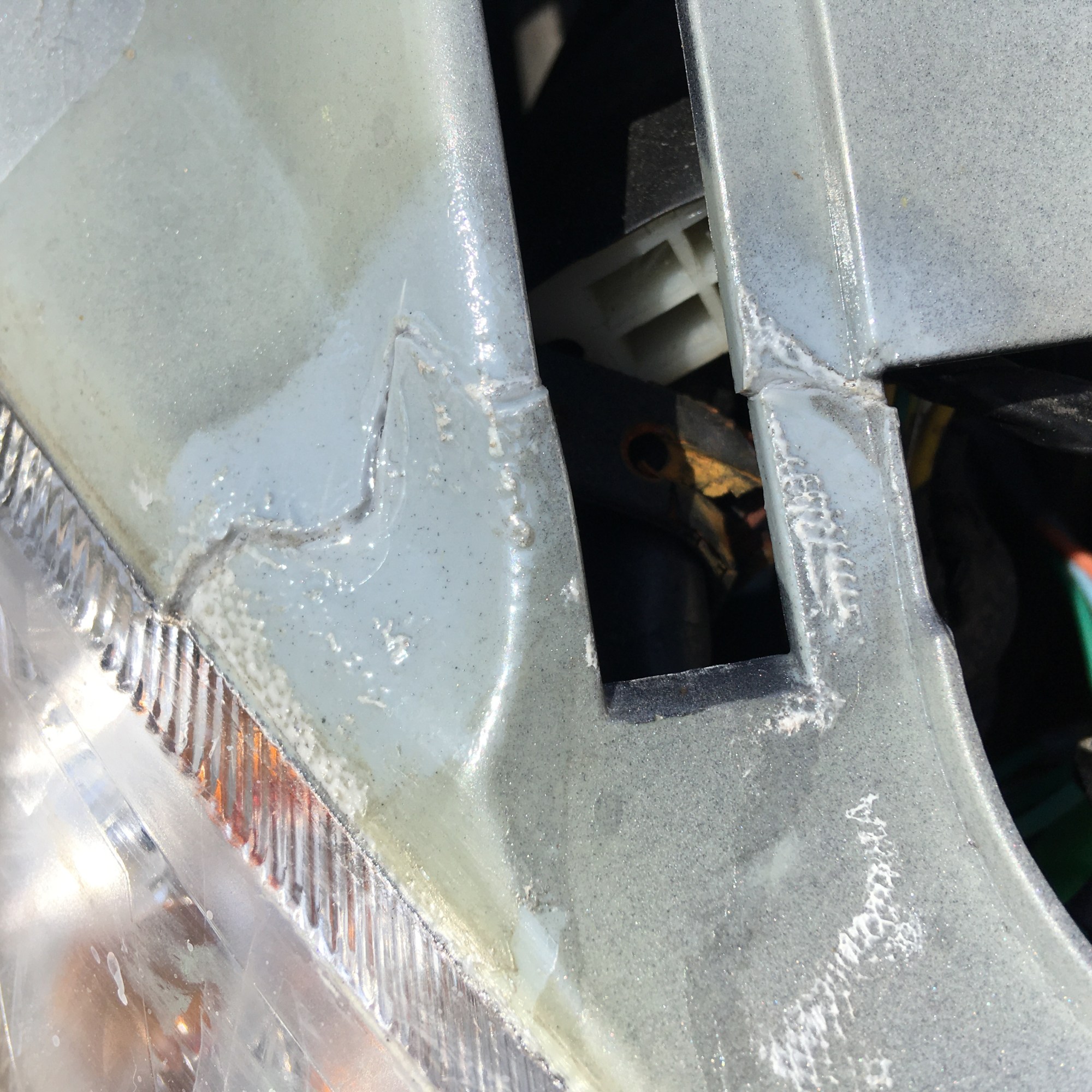 The first step was to see if I could weld back together the broken parts that I still had from the second vandalism. ABS can dissolve and be plastic welded with acetone or with certain types of modeling glue. So I removed my trash-bag-and-tape cover, dissolved the edges with acetone, and held them in place with gaffer’s tape until set.