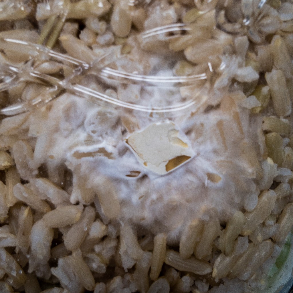 The first step was to create grain spawn. This is first step in growing any gourmet or medicinal mushrooms, in which the mycelium is rapidly expanded in a sterilized grain substrate.