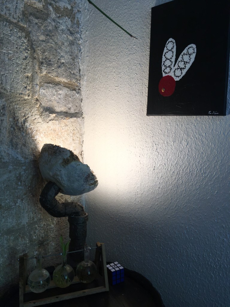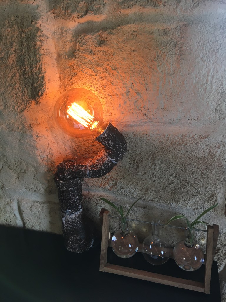 A couple years ago, Gwenn and I made a lamp out of random PVC pieces, some concrete, and paint.