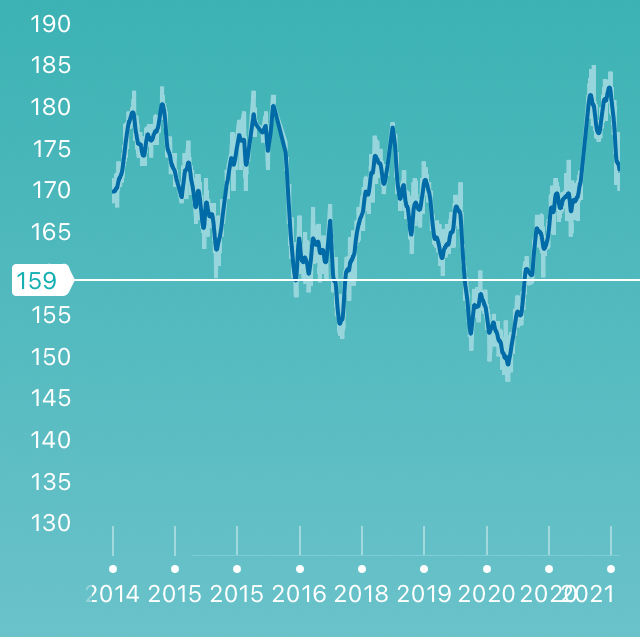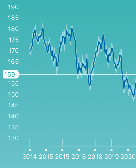 I have tracked my weight almost daily for the last eight years. Interestingly, I seem to go through cycles with a period of about eighteen months, but with a general downward slope.